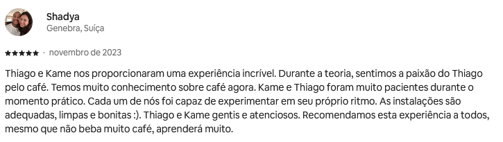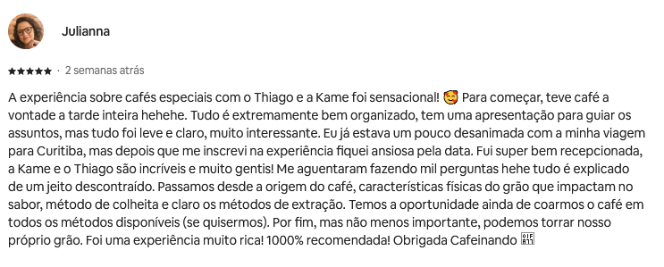A Experiência Cafeinando ocorre sempre nos finas de semana, das 14h às 19h. Após a finalização da compra, entraremos em contato para agendamento do encontro (mediante disponibilidade da agenda).